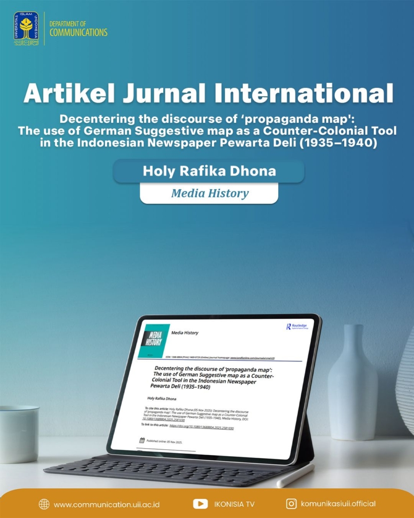 Artikel ilmiah garapan dosen Ilmu Komunikasi, UII yakni Holy Rafika Dhona, S.I.Kom., M.A. yang berjudul “Decentering the discourse of ‘propaganda map’: The use of German Suggestive map as a Counter Colonial Tool in the Indonesian Newspaper Pewarta Deli (1935–1940)” telah terbit dalam jurnal Media History, Routledge – Taylor & Francis Group pada 5 November 2025.