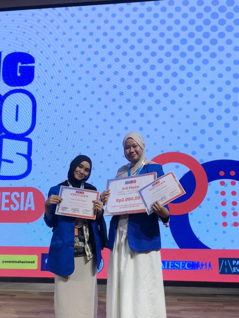Two IPC UII students won third place in the Leading Scientific Fair 2025 International Business Plan Competition. The competition, held on 11–12 October 2025 at the K.H.A Wahid Hasyim Building, UII, Nabila Aulia Zahra and Gadis Kurnia Khamba emerged as winners.